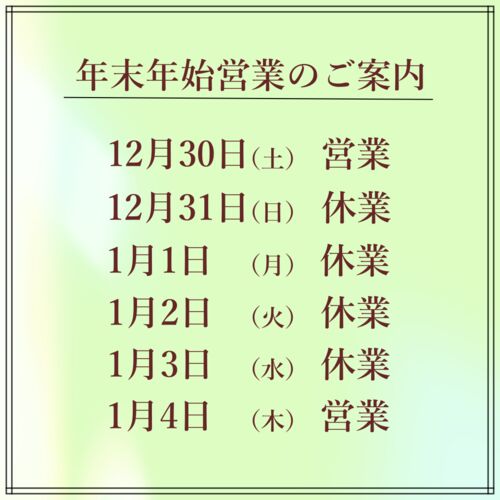 こんにちはクレメガネイオン店のキタノです。 年末年始営業のご案内です。 年内は30日(土)まで営業しております。 年始は1月4日(木)より通常営業となります。 9月から本格的にひとりで営業しておりますが、気が付けば4か月経ちました。 変わらず沢山のお客…