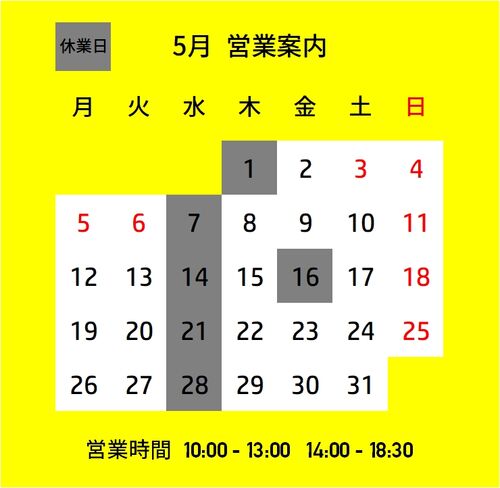 5月の営業案内です。
